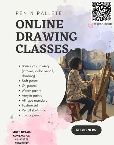 At PEN N PALLETE, we believe art is a journey of the heart — and we’re here to guide you through every vibrant step! Our online classes bring professional-level training straight to your home, blending classic techniques with creative exploration.